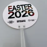Lightweight handheld fans with printed designs for events and promotions. Basic price for standard prints.